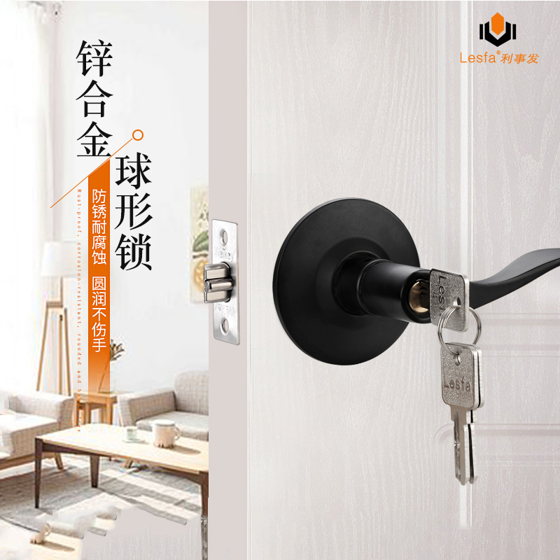 Black stainless steel handlock door lock lock room lock lock bedroom common type anti-theft round lock