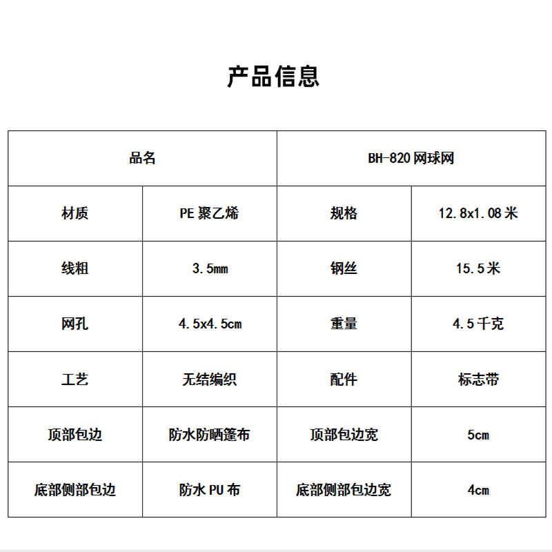 BH-820 tennis net standard type