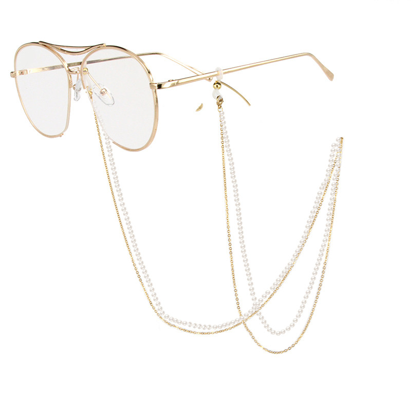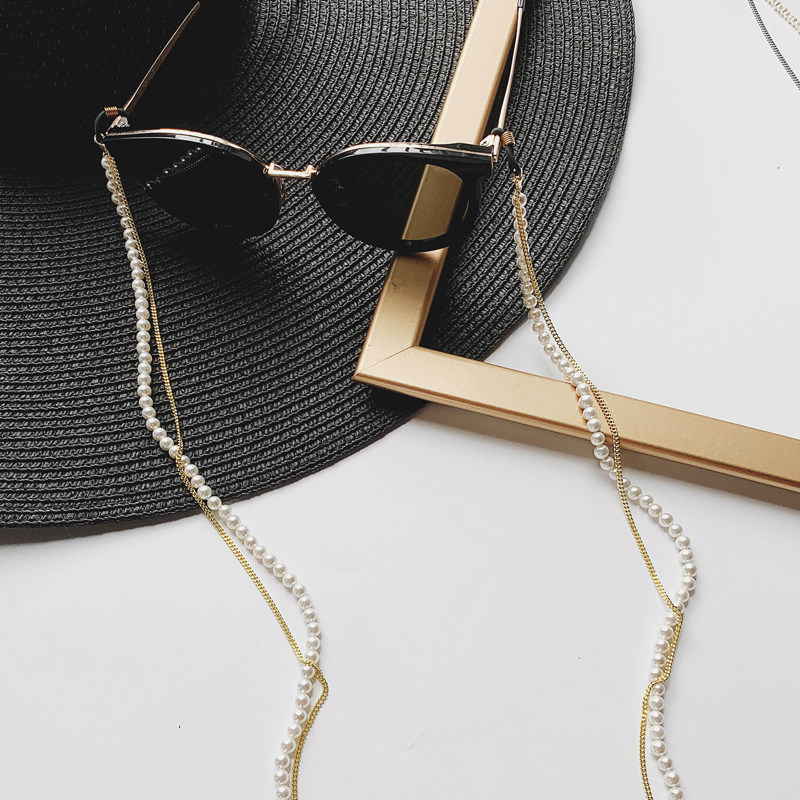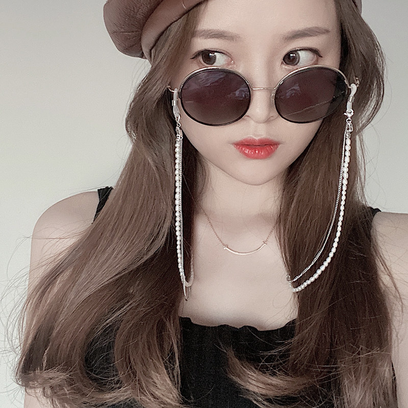 Small Fragrant Wind Glasses Chain Woman Hanging Neck Mask Chain Retro Net Red Stars The Same Fashion Light Lavish Pearls Hang