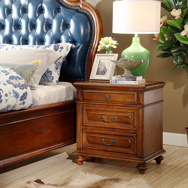 American European solid wood furniture rustic retro minimalist wedding bed double 1 8 meters big bed 1 5 meters bedside table