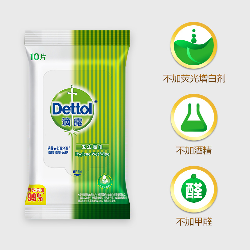 Dettol Drops Wet Paper Towels 10 Pieces Clean Wet Tissue Bags Carry-on portable packaging Effective bacteriostatic