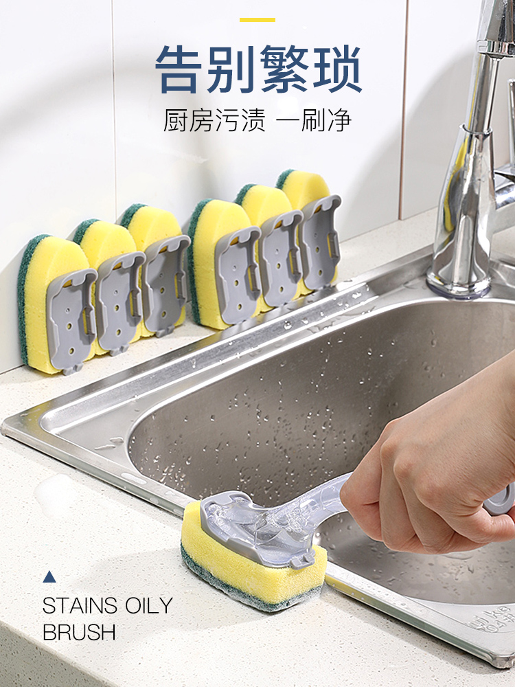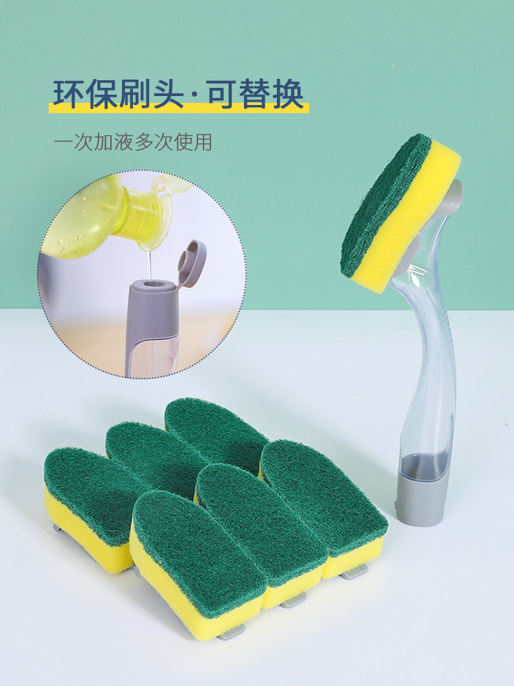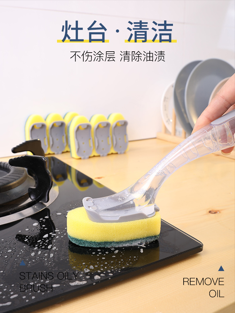 Mr clean brush pot brush Dish washing pot artifact cleaning brush Kitchen handle Sponge Lazy plus liquid detergent