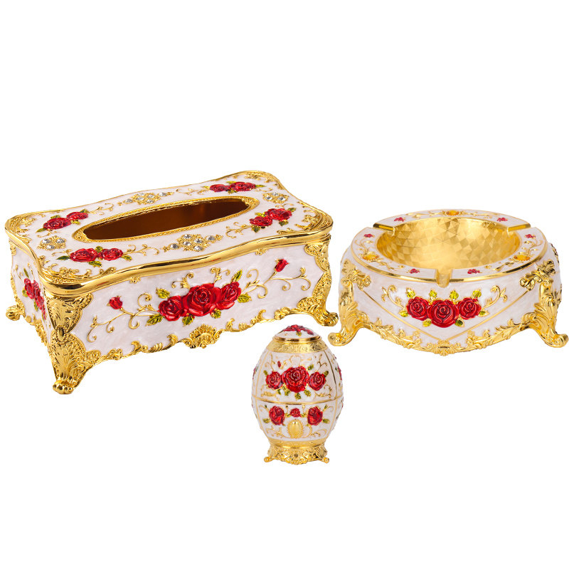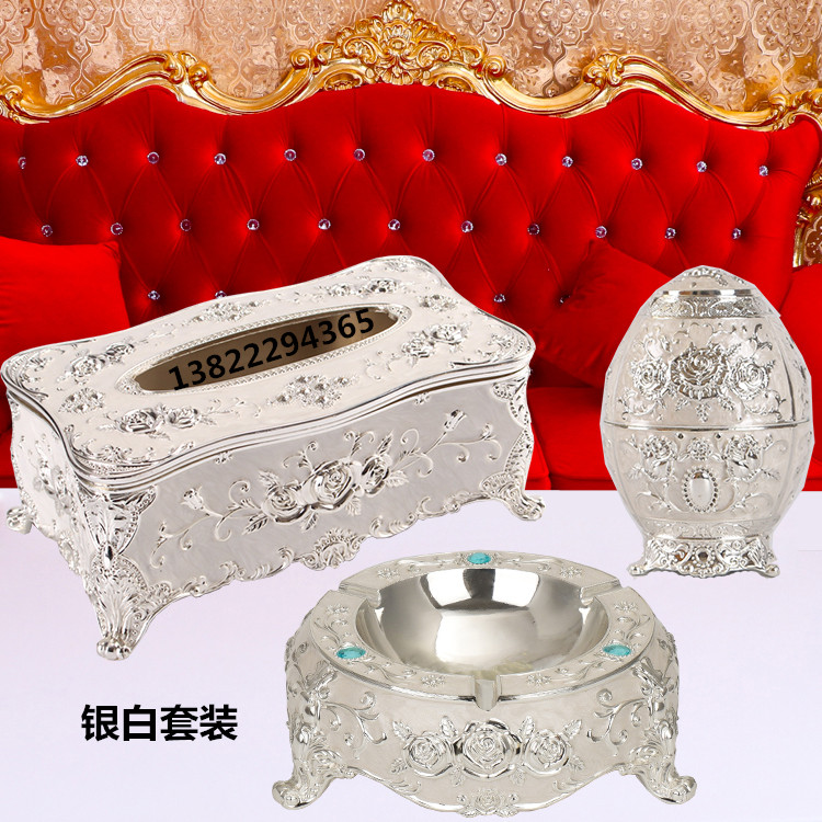 Ktv table supplies living room coffee table storage box creative three-piece European alloy toothpick holder ashtray tissue box