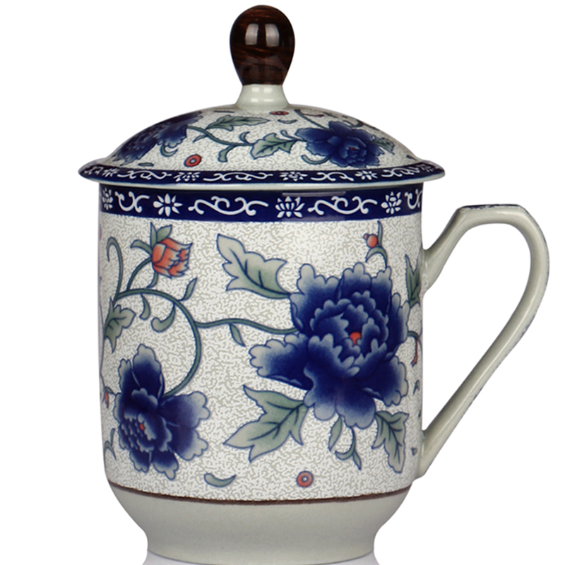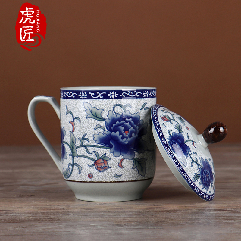 Tiger artisan Jingdezhen Qinghua Porcelain Tea Cup ceramic with lid cup Home retro with the office Cup Chinese Conference Cup