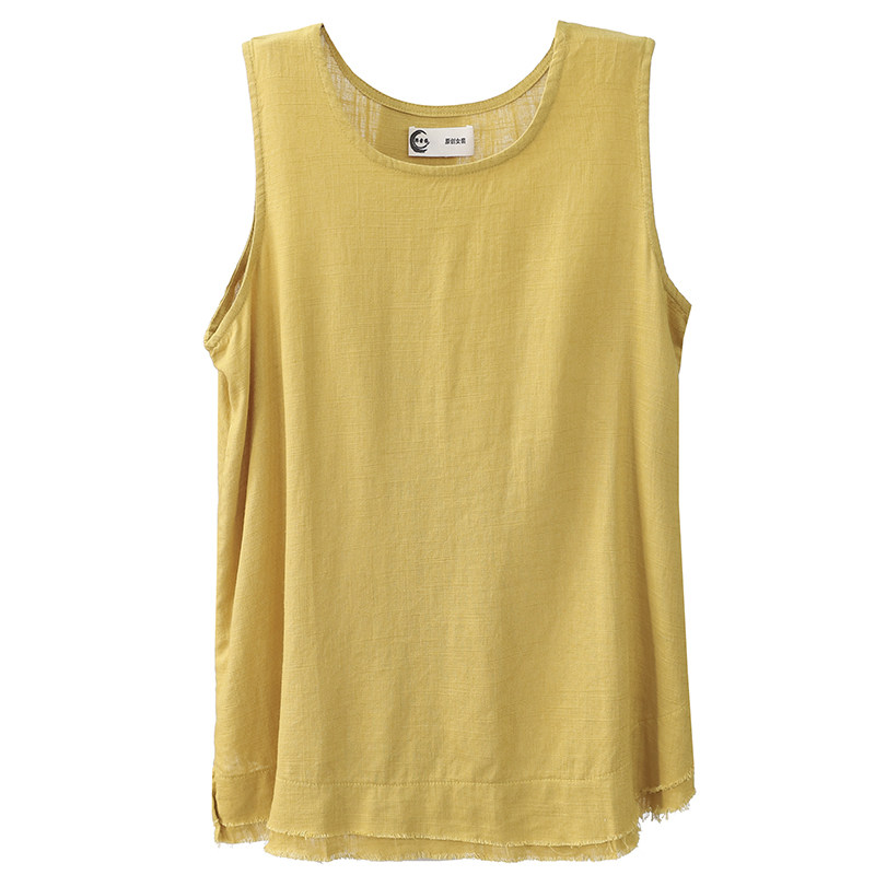 Han Suoyi retro literary summer I-shaped top loose sleeveless linen suspender base shirt Cotton and hemp vest for women