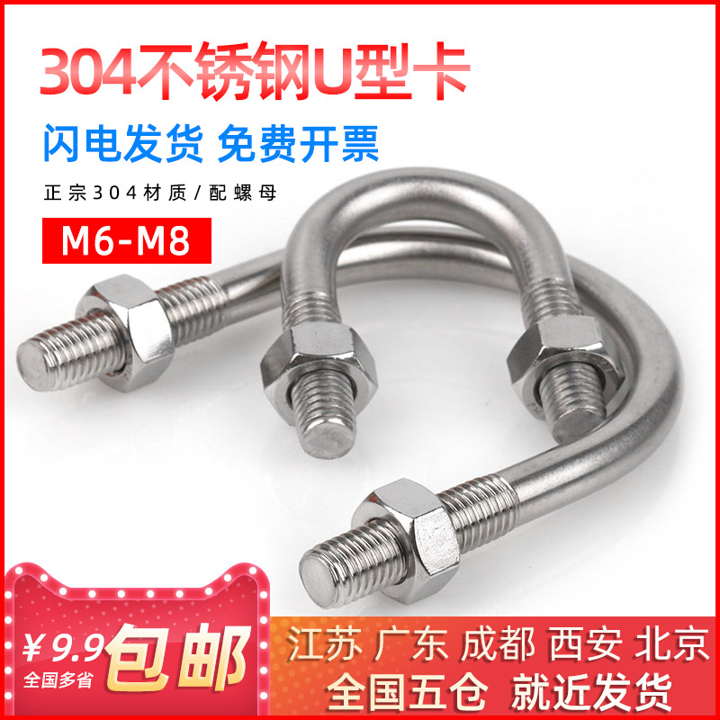 304 stainless steel U-type card water pipe card metal pipe clamp U-type bolt U-type pipe card U-type screw bolt M6-M8