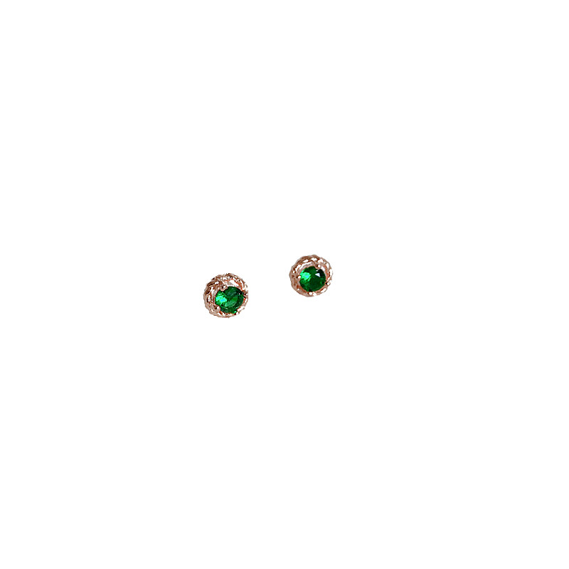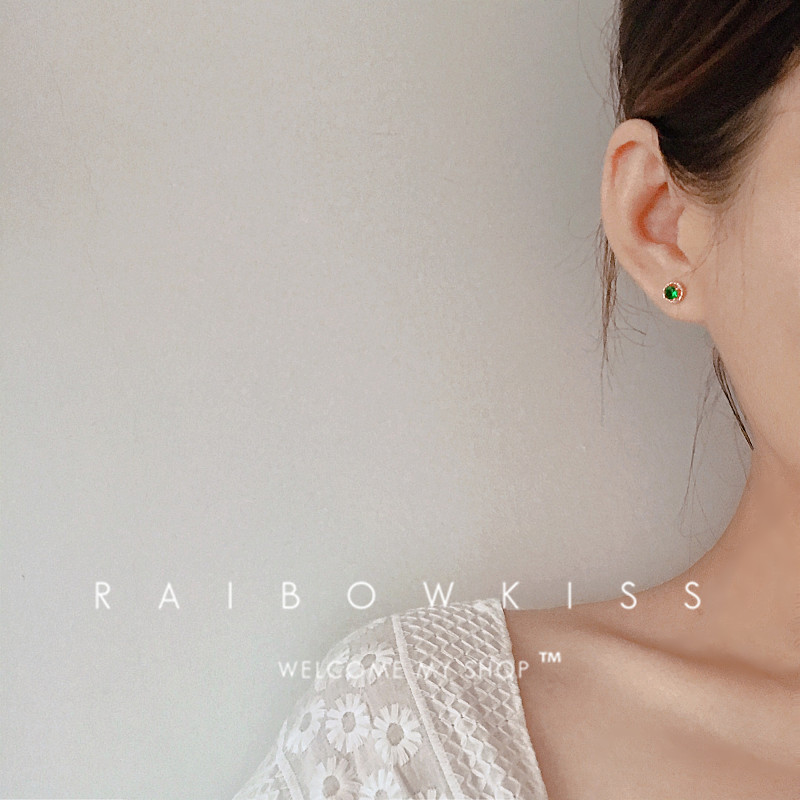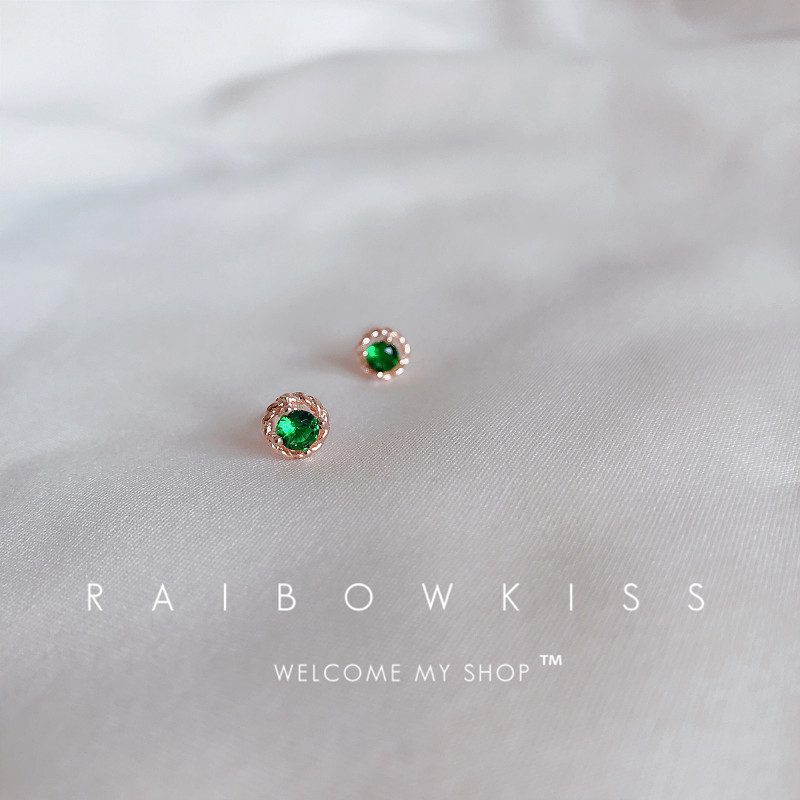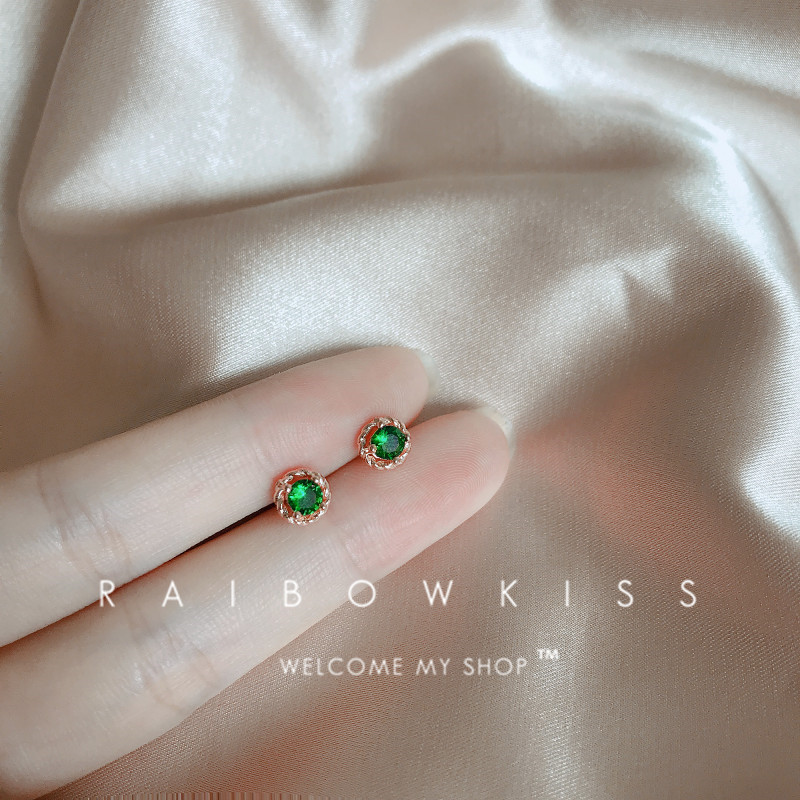 Korean version of simple 925 sterling silver earrings Rose gold emerald Zircon crystal stud earrings Gem gold plated student gift