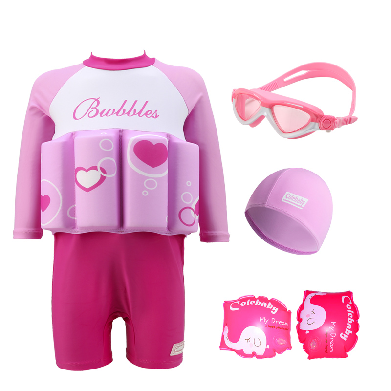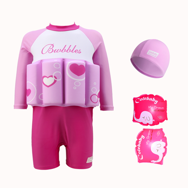 Children's buoyancy swimsuit, baby long-sleeved infant girl one-piece sun protection 2024 new girls' swimsuit