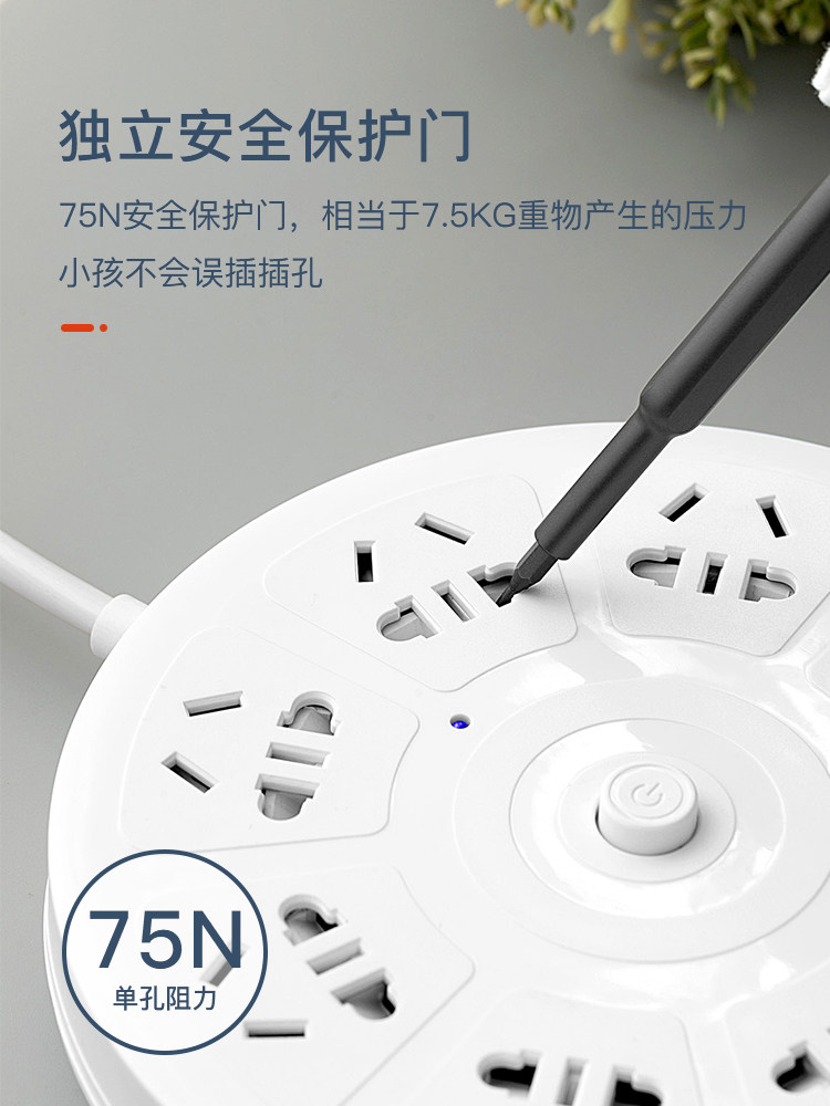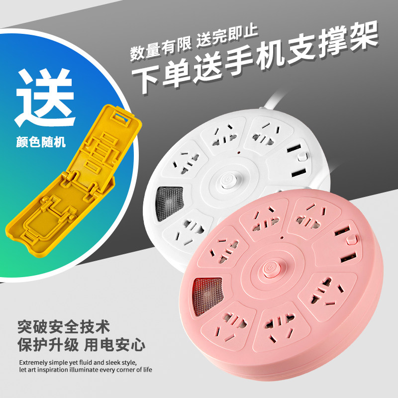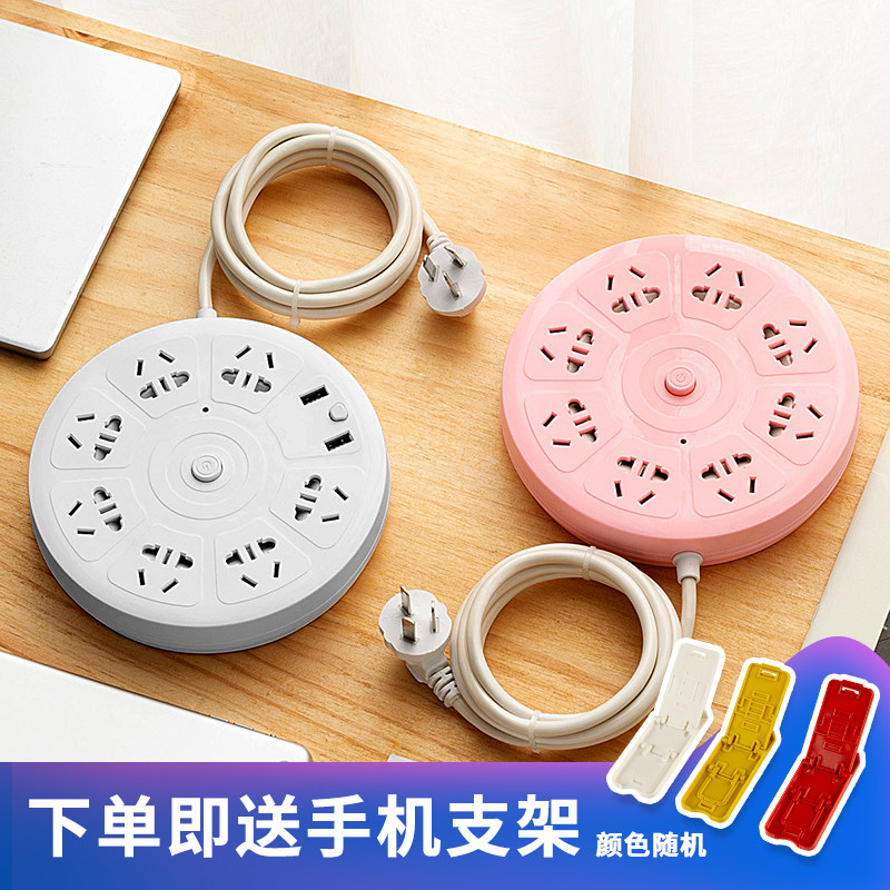 Disc socket panel porous plug-in board home wiring board cute pink plug-in drag line board with night light USB