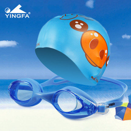 2021 New HD waterproof anti - fog swimming cap suit for boys and children with adult electroplated swimming glasses