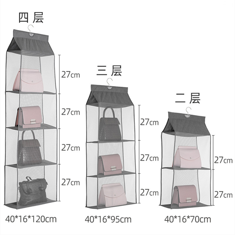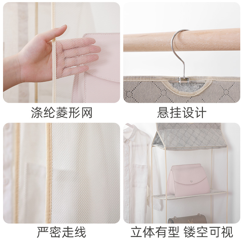 Multi-layer with hook bag storage hanging bag wardrobe wardrobe wall-mounted household hanging fabric dust-proof rack
