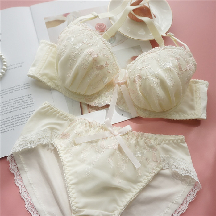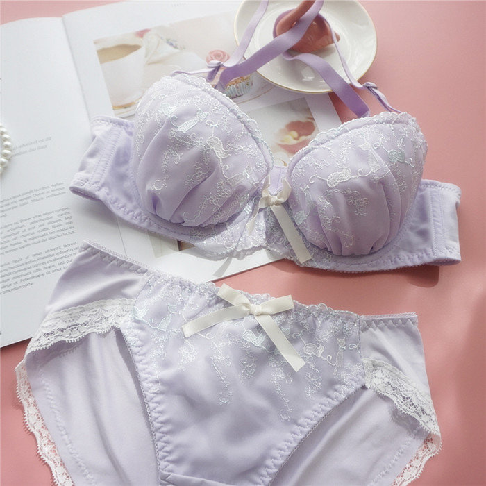 Summer Acacia Japan sweet girl cute kitten embroidered bra set thin Cup comfortable plus size underwear
