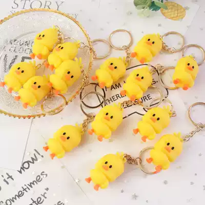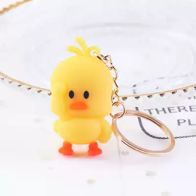 Cute three-dimensional little yellow duck key shake sound Dance Doll yellow duck silicone key chain couple car key pendant