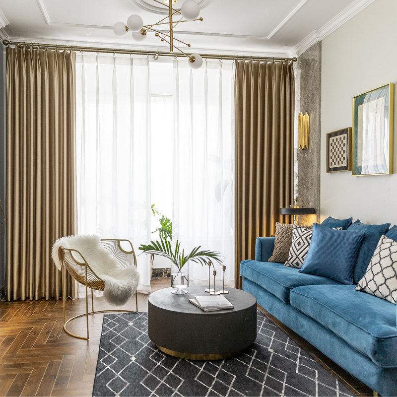 Modern light luxury curtains, satin texture, luster, imitation silk, high precision, calm and atmospheric living room, finished product customization