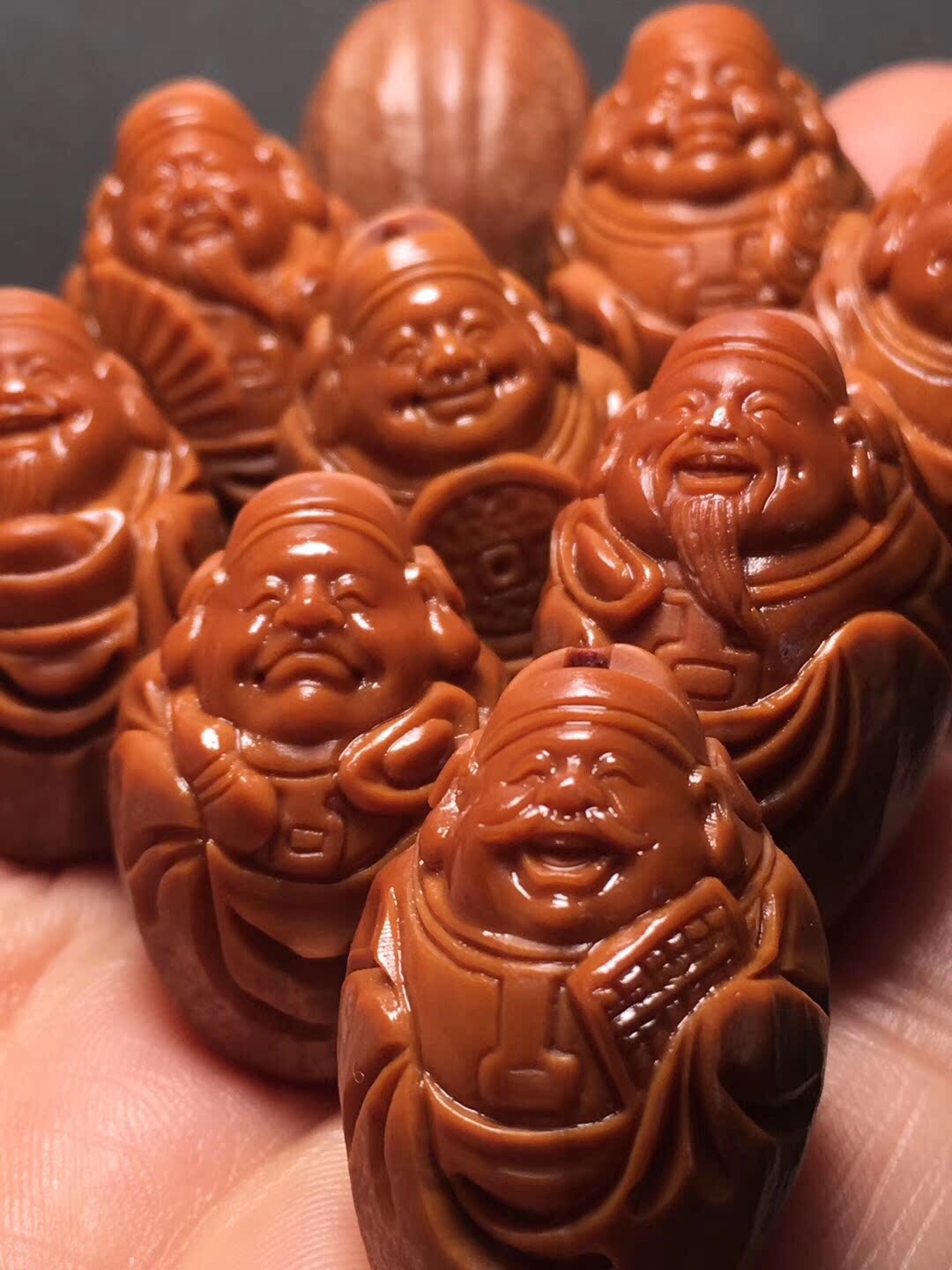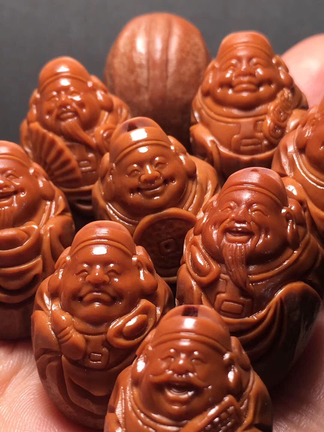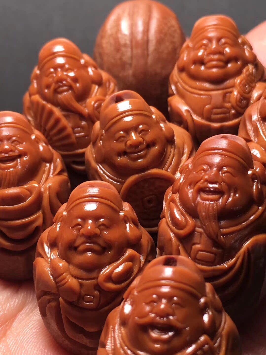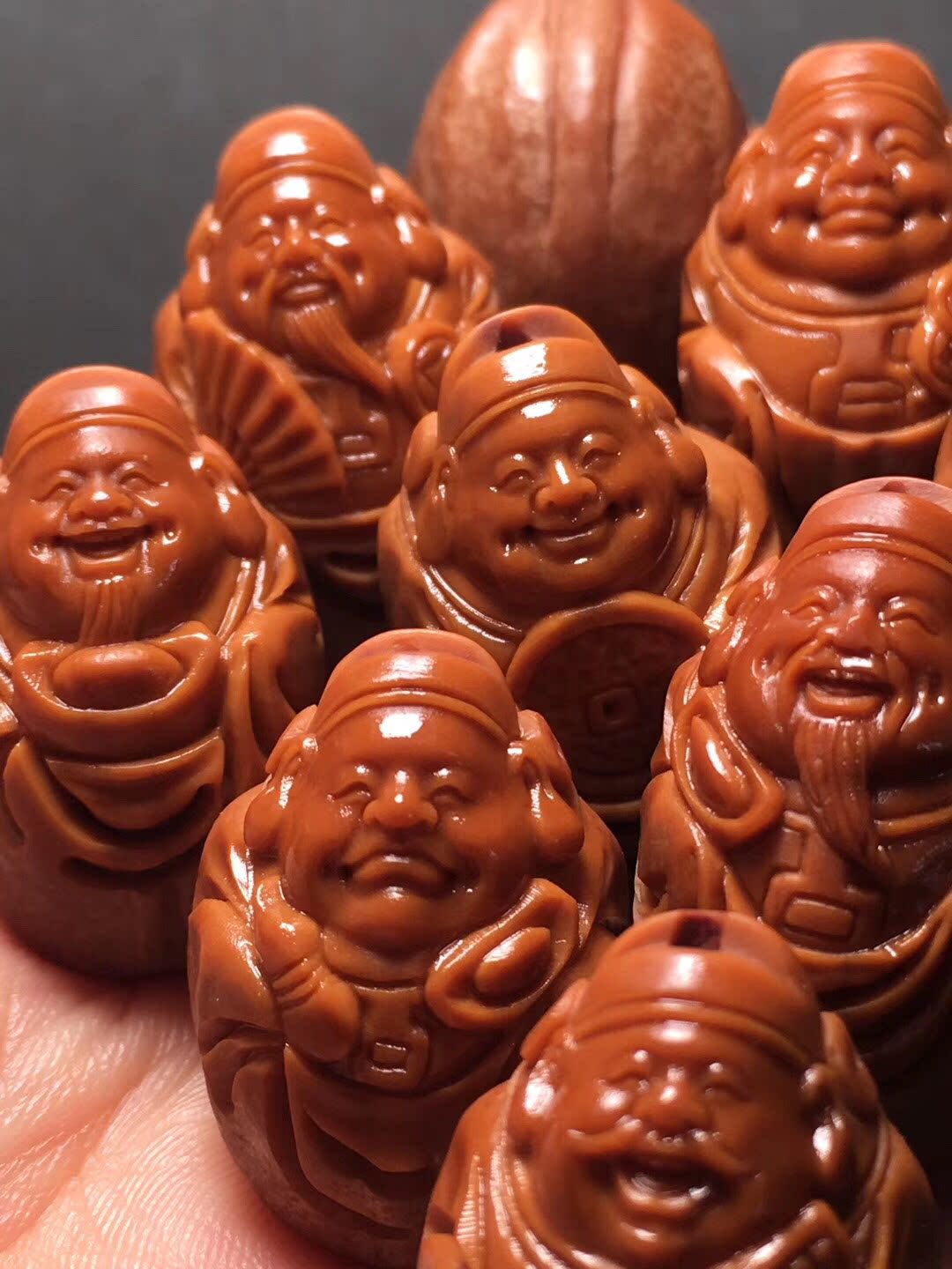 Sugong olive core carving hand string coating eight God of wealth Pure hand carving text play hand chain olive Hu Wen play men