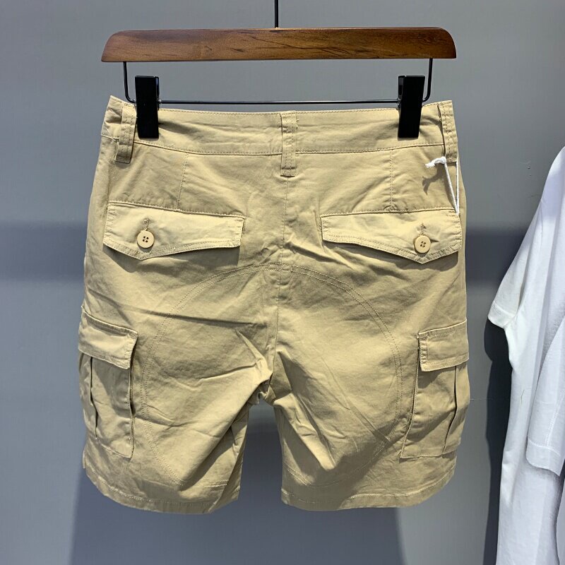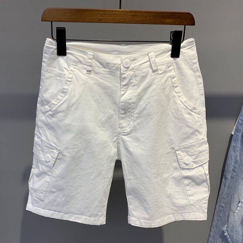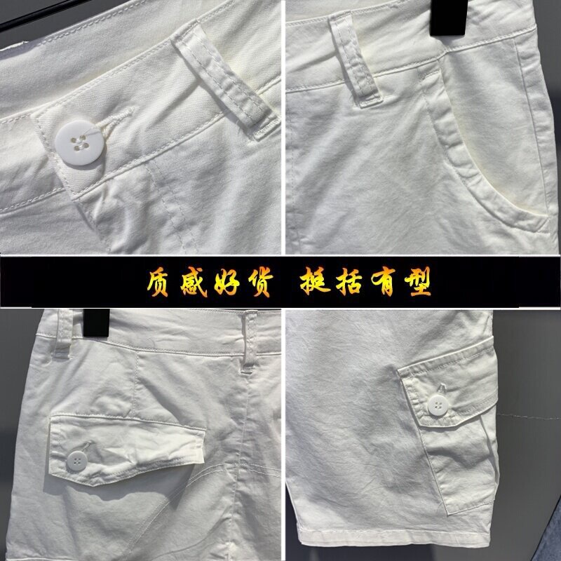 Summer white overalls casual shorts male tide cards 50% pants Korean version trendy men loose pair of pants slim 50% pants