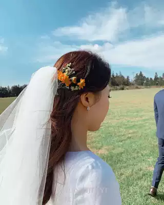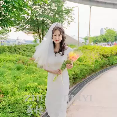 Korean new puffy yarn wedding certificate veil photo simple short travel veil