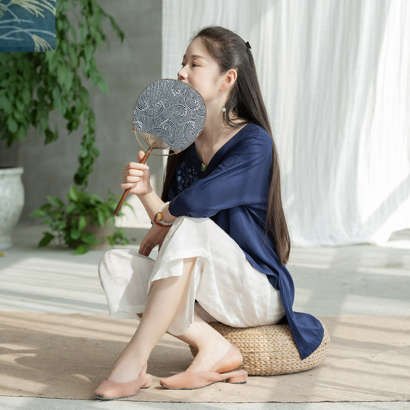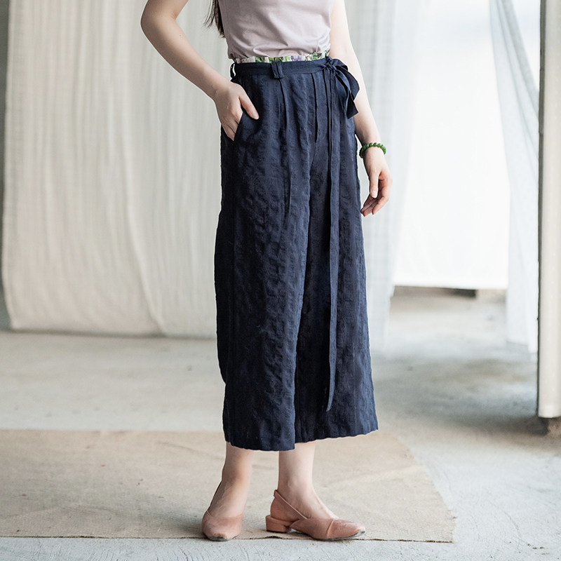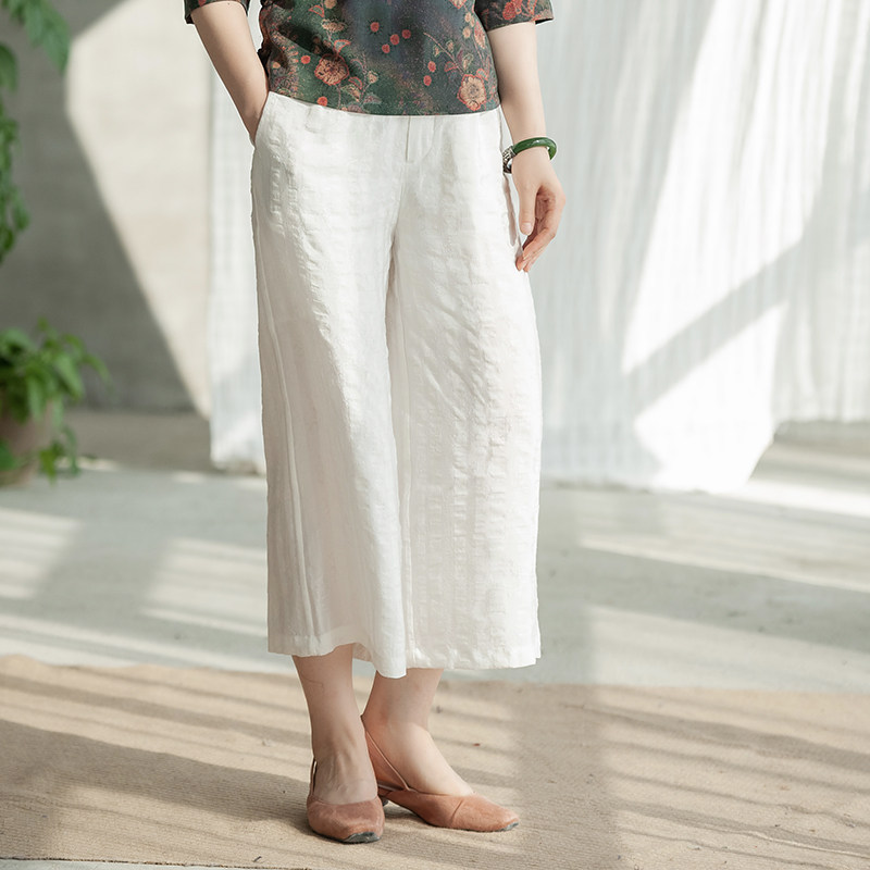 (Find Streaming dust) Flowers Open Original Cotton Linen Wide Pants Woman Loose 7 Pants Straight Barrel Pants Casual Pants