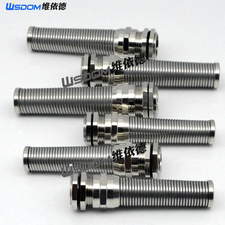 Metal anti-bending connector spring tail copper nickel-plated twist-resistant cable sealing and waterproof M16M18M20 gland head