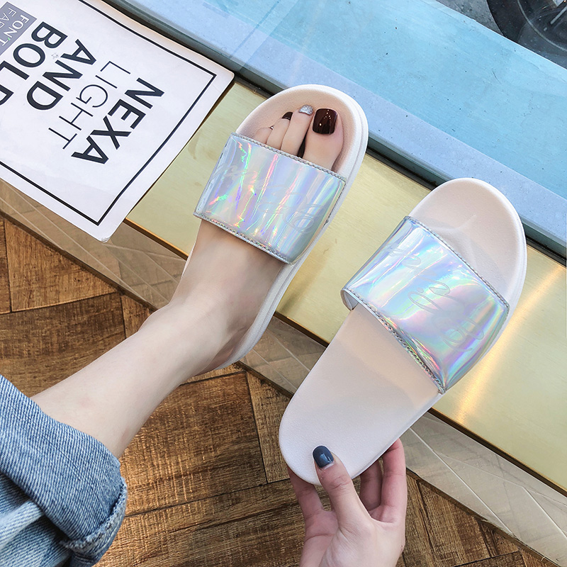 Slippers women wear fashion seaside high-heeled sandals and slippers ins net red Joker flat-bottomed beach shoes drag summer