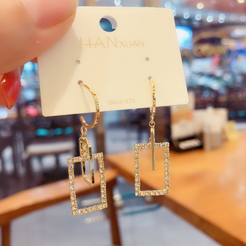 South Korea's East Gate Fashion New Square Earrings 2022 New Tide Temperament Personality 100 Hitch Design Sensation Small Crowdshot Woman