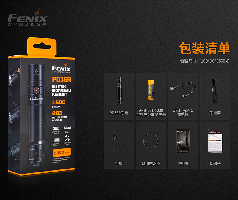 FENIX Phoenix PD36R intense light flashlight waterproof bright Type-C USB charging 21700 battery