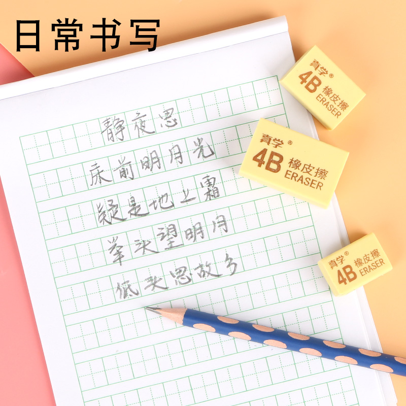 True learning eraser for primary school students to wipe clean without leaving marks creative cartoon cute school supplies 2B like leather eraser art 4B students special 2 than dust-free eraser boxed stationery