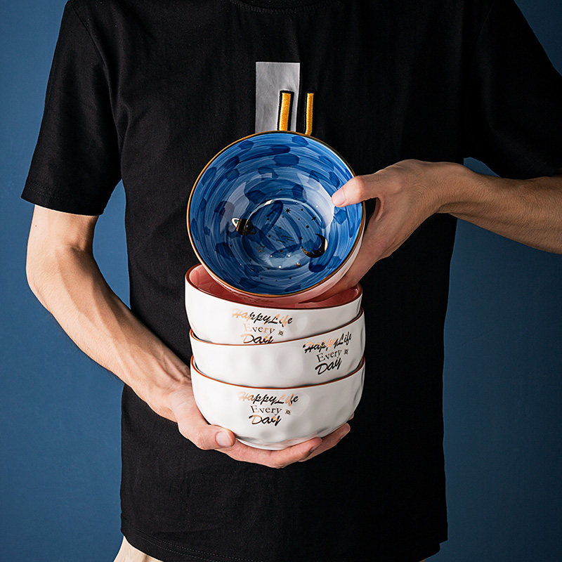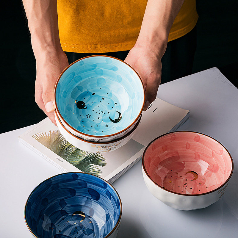 Starry Sky Bowl Ceramic Breakfast Oatmeal Bowl Home Eating Bowl Creative Dessert Bowl Cute Fruit Bowl Salad Bowl 6 Inch