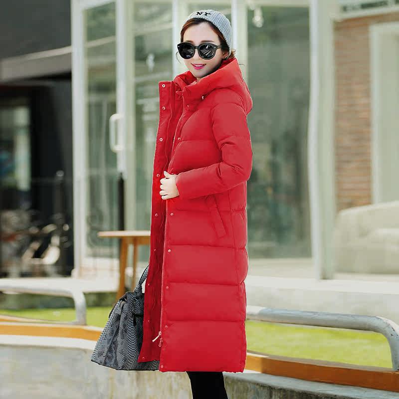 Medium and long version of feather cotton female winter thickened warm hood over knee cotton slug bride engaged to get married back to door