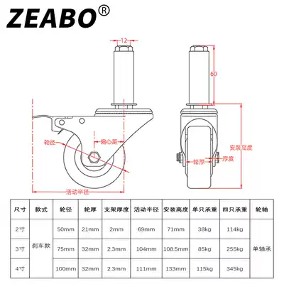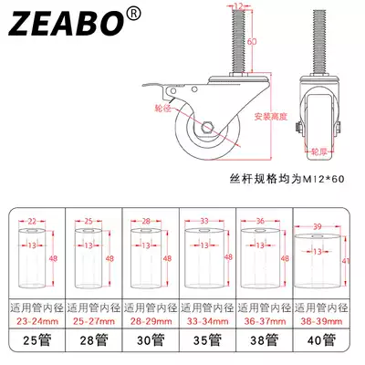 (4 installed) 25 28 30 35 38 40 round tube packing table rack table universal wheel caster pulley