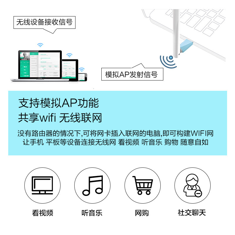 Drive-free sky blue 150M large antenna network card drive-free dark blue 300M antenna through-wall network card drive-free lake blue 150M mini wireless network card 300M drive-free wireless network card mini WIFI