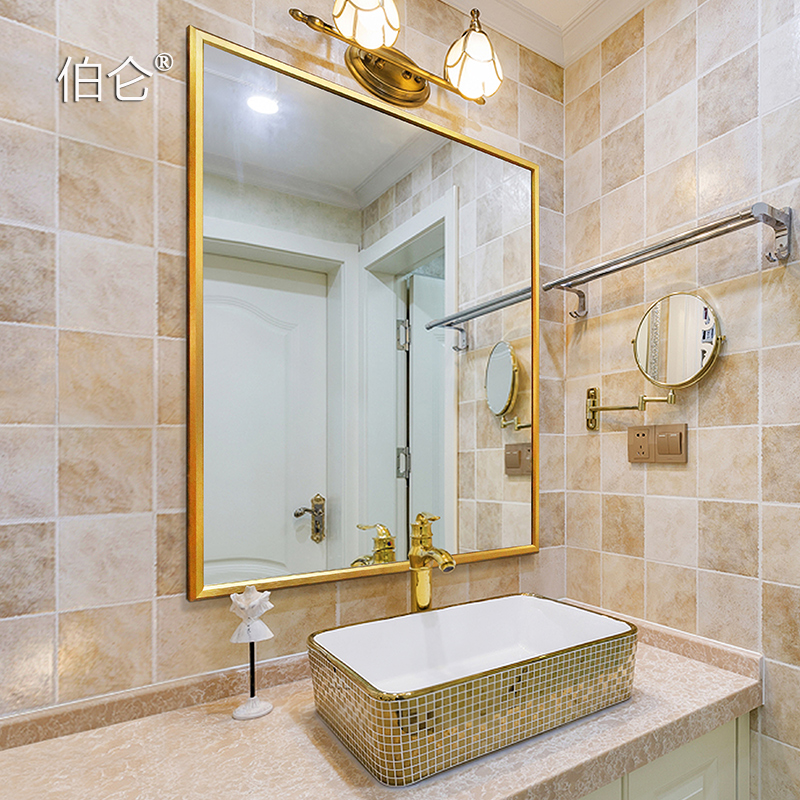 Light and luxurious aluminium frame Bathroom Mirror Makeup room washstand Cosmetic Mirror Explosion Proof Bathroom Toilet Makeup Mirror Wall-mounted Waterproof Mirror