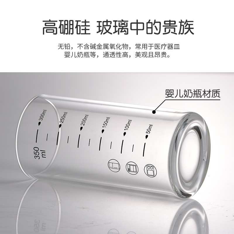 Children's straw milk cup transparent with scale can be microwaved to heat the glass cup baby drink water cup breakfast bubble milk