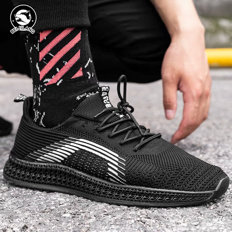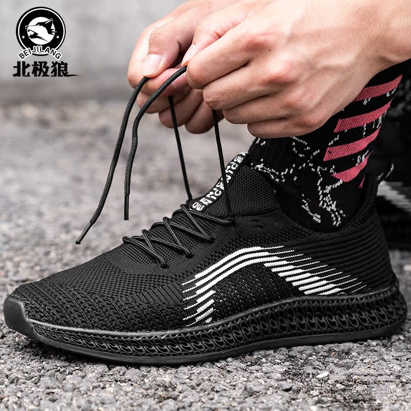 Arctic wolf summer breathable casual sports shoes men's mesh lightweight canvas trendy men's shoes canvas flying woven running shoes