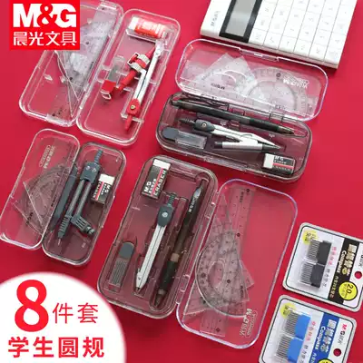 Chenguang 8-piece set compass for students Practical multi-function metal compass ruler set Cute small fresh compass for students clipable pen drawing compass replacement refill Universal