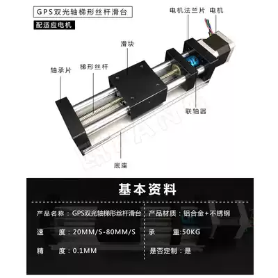 GPS trapezoidal screw double optical axis linear guide slide module electric worktable slide rail 42 57 stepper motor