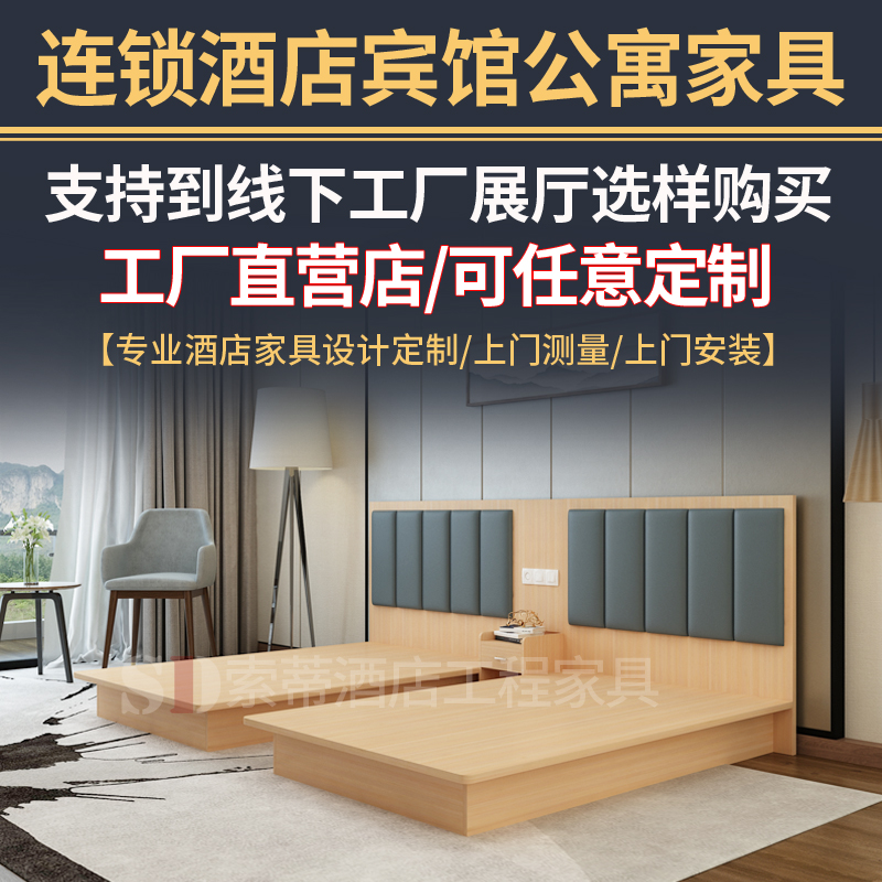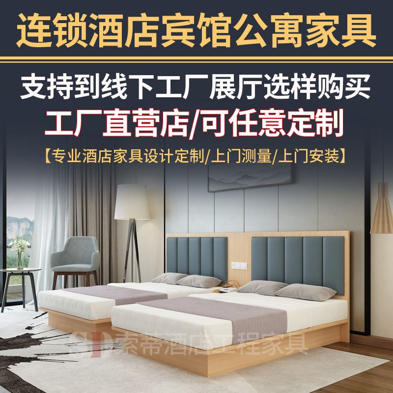 Quick Hotel Bed Apartment hotel bed Standard room Minkers furniture full set of custom single double 1 2 1 5