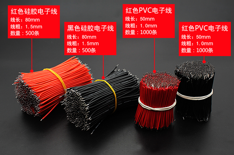 Black silicone electronic wire (500 pcs)Red silicone electronic wire (500 pcs)Black PVC electronic wire (1000 pcs)Red PVC electronic wire (1000 pcs)