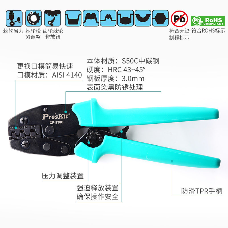 Taiwan Baogong CP-230C continuous terminal crimping pliers ratchet crimping pliers labor-saving bare terminal cold-pressing pliers
