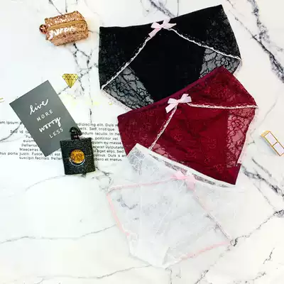 Underpants ladies cotton crotch thin hollow lace mesh sexy plus fat fat mm200 kg triangle pants