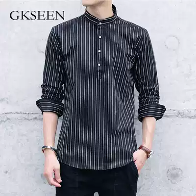 GKSEEN Ji Carson Men's Shirt Casual Long Sleeve Crewneck Korean Pullover Blow Stripes Autumn Winter base shirt