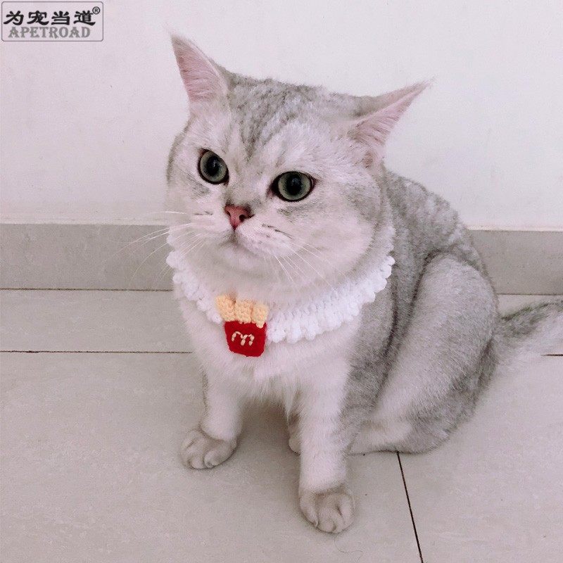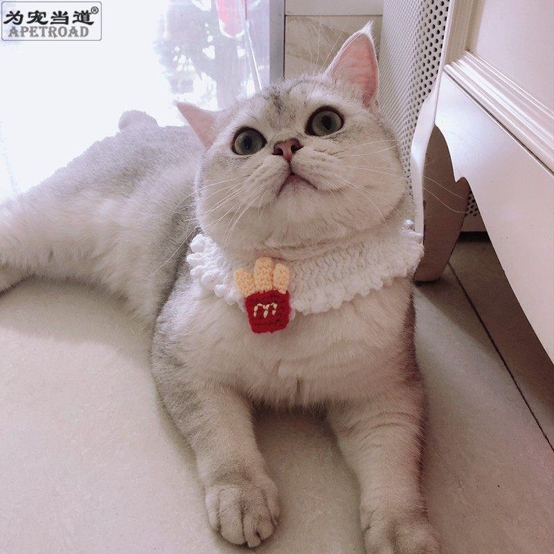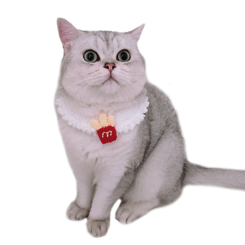 French fries three-dimensional small cute pet collar cat bow tie hand woven pet supplies English short American short puppet