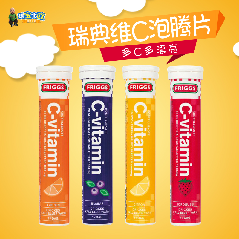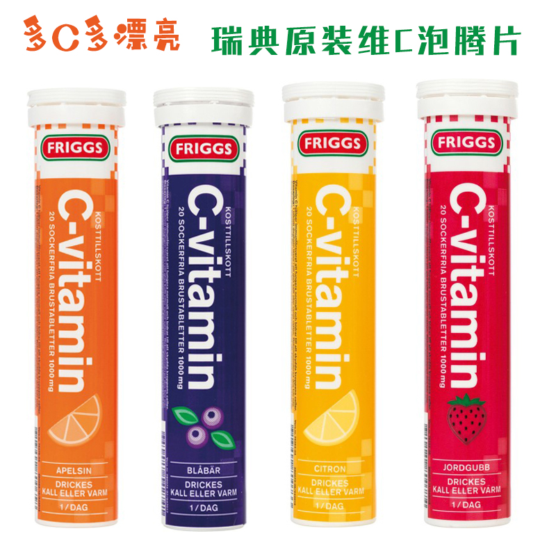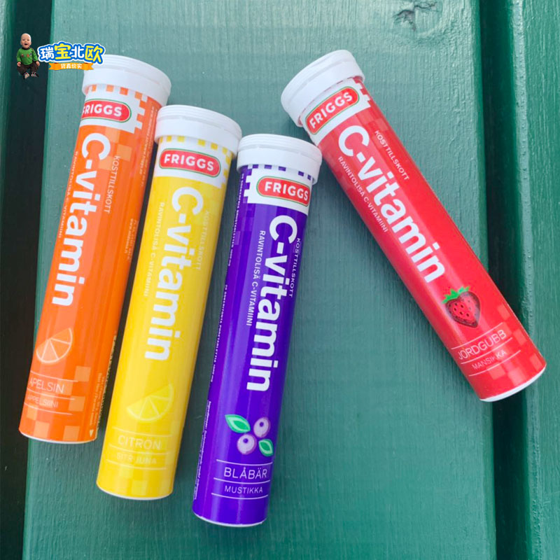 Swedish original imported FRIGGS Vitamin C Vitamin C Foaming Ingots Fruit Taste Strawberry Apple Lemon 20 slices Ribao