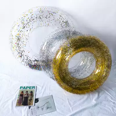 Round transparent glitter sequins swimming ring female adult large swimming ring thickened ins net red lifebuoy adult beach