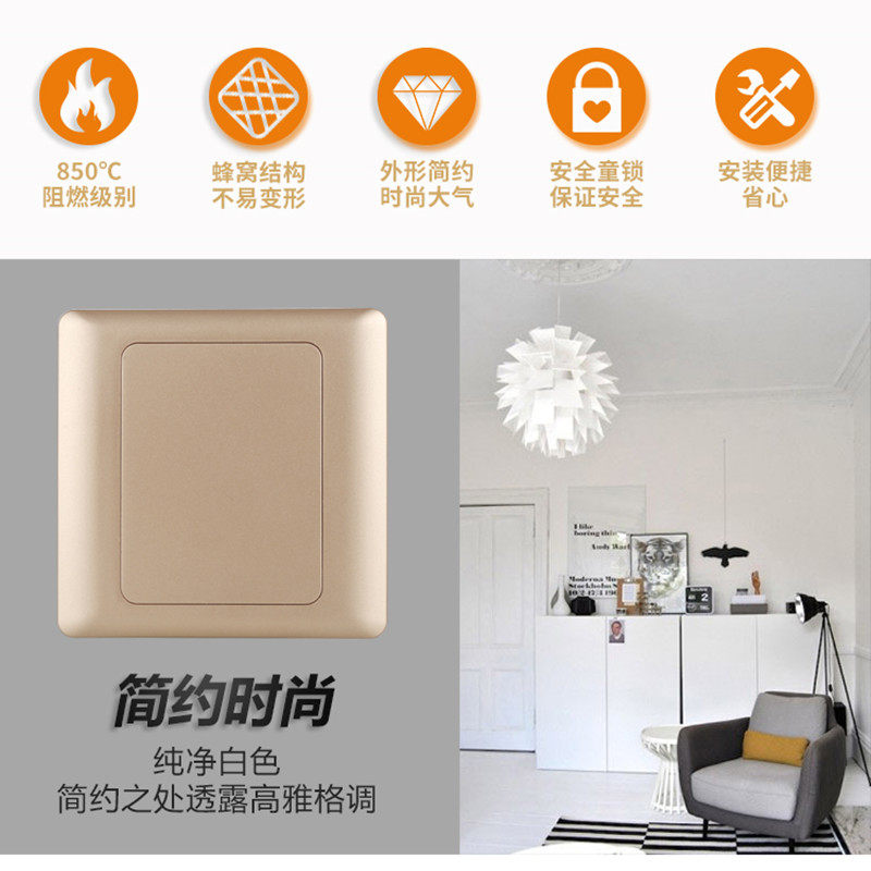 Thickened Flame Retardant 86 Type Champagne Gold Blank Panel Blind Plate Bezel Switch Socket Bottom Case Golden panel Cover plate