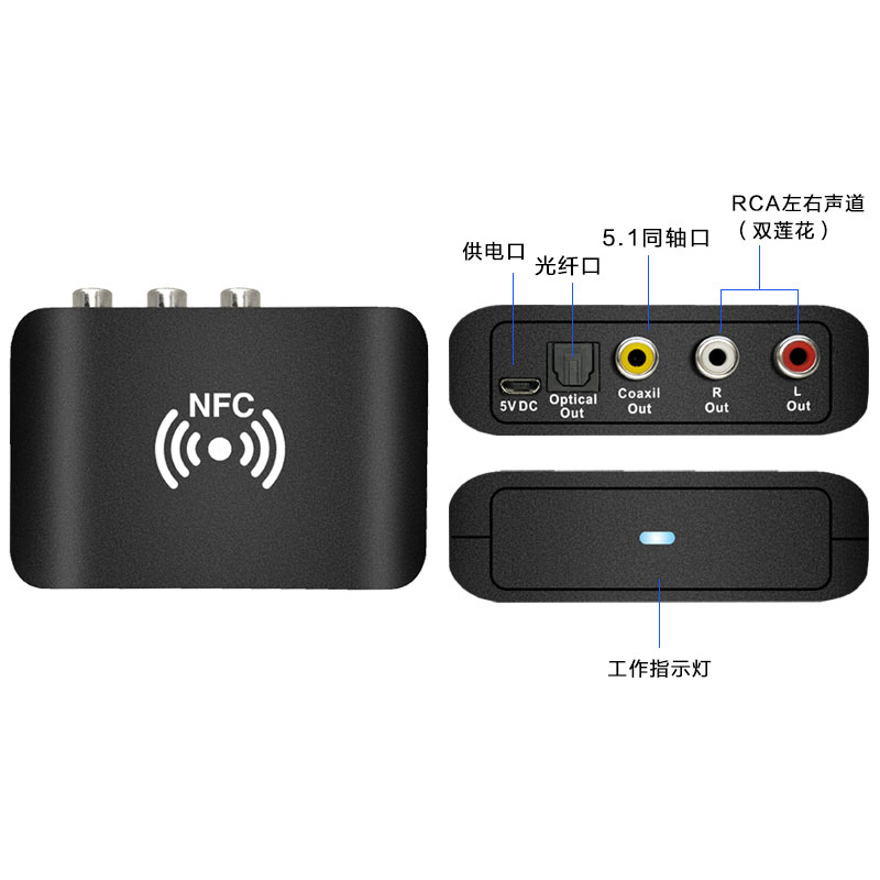 Bluetooth receiving adapter 5 0 audio transmission aux to external audio box power amplifier fiber coaxial nfc without distortion