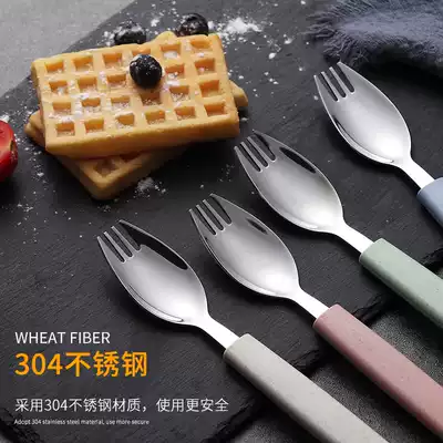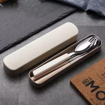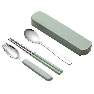 Portable salad spoon three-piece set of powder Portable salad spoon three-piece set of blue portable salad spoon three-piece set of green portable salad spoon three-piece set of rice stainless steel wheat spoon chopsticks 2-piece set of powder
