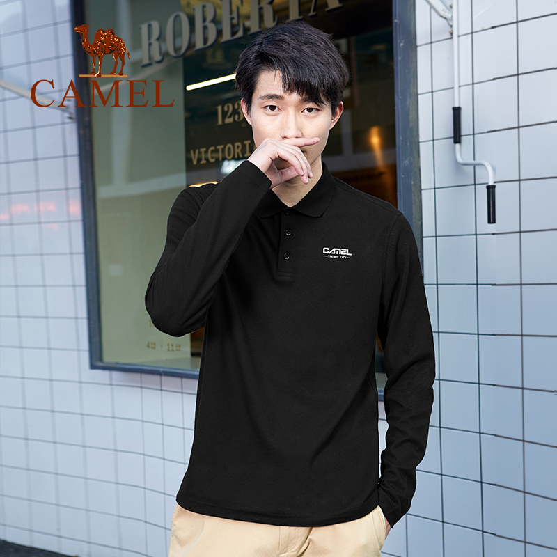 Camel men's spring and autumn lapel top business casual simple solid color polo shirt men's long-sleeved t-shirt