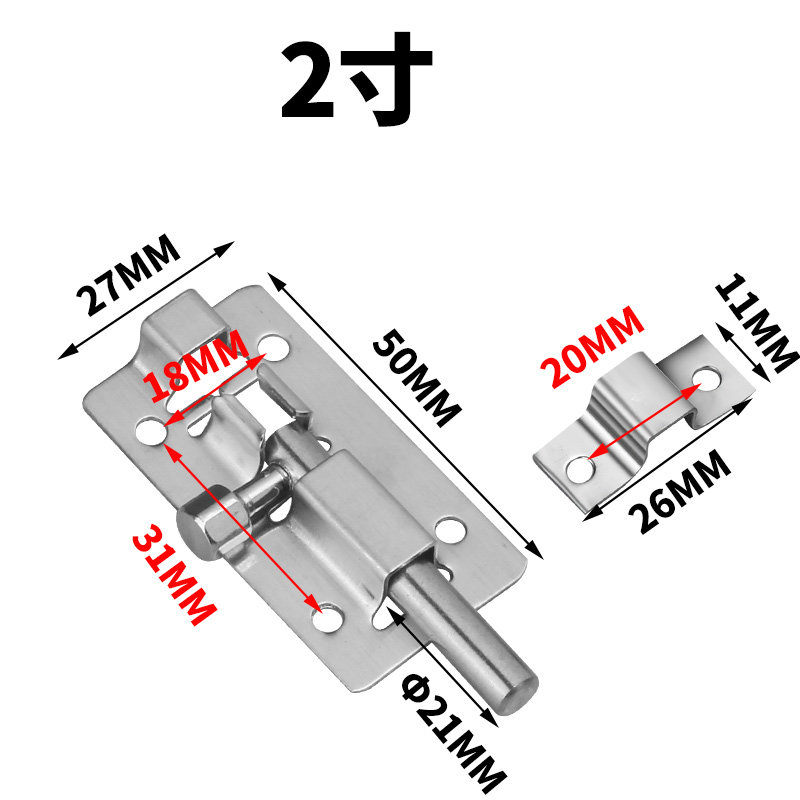 Stainless steel surface-mounted 1 5-inch 2-inch bolt surface-mounted small square bolt shutter shutter door buckle door bolt wooden door latch old-fashioned buckle