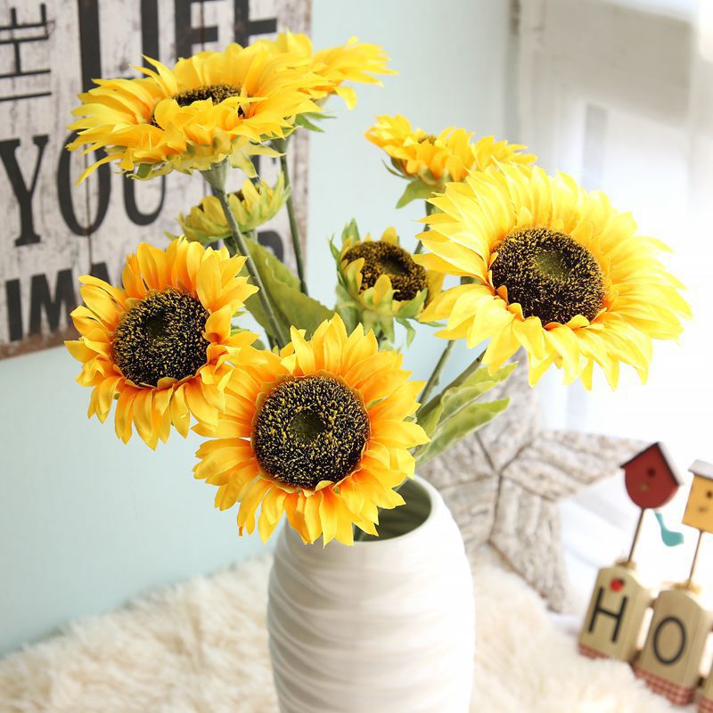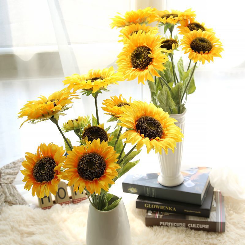 Simulation sunflower sunflower 3 fork bottle home living room Yunya big floor fake flower decoration flower arrangement decoration